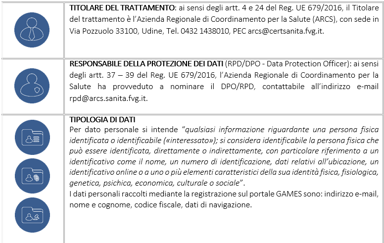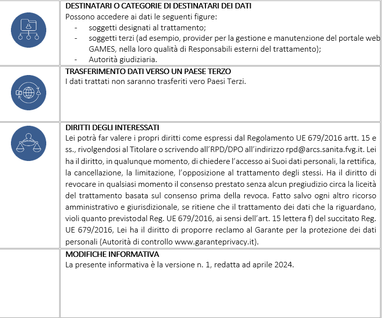 Games: informativa ai sensi dell'art. 13 regolamento UE/2016/679